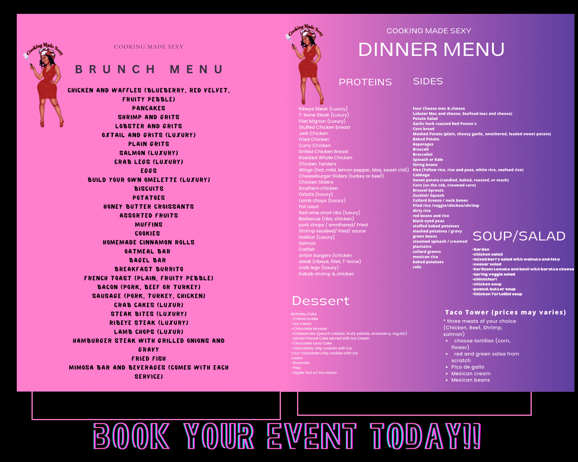 Our team also optionally wears the sexist lingerie upon request for bachelor parties and game nights etc. While Providing food for your stomach your eyes will also have a feast!